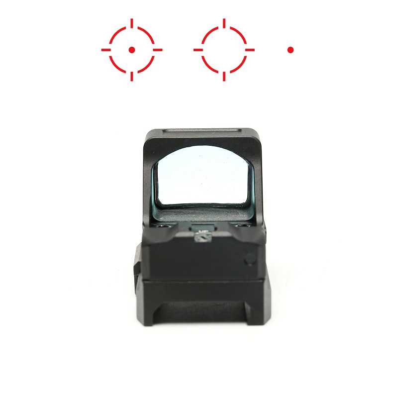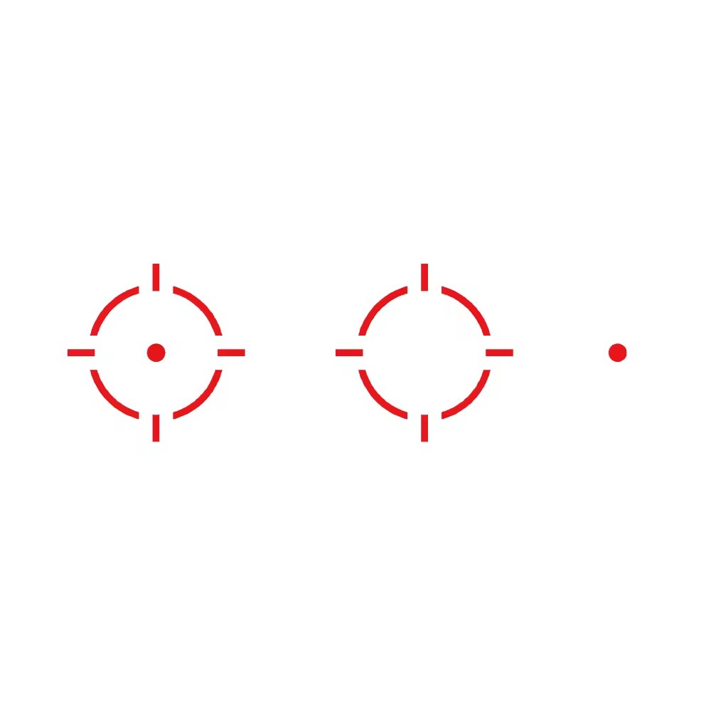 1x24x17 Red Dot with three different crosshairs in RED COLOR, has the shake awake feature and fits most RMR style pistol plates on guns, easy side battery installation.