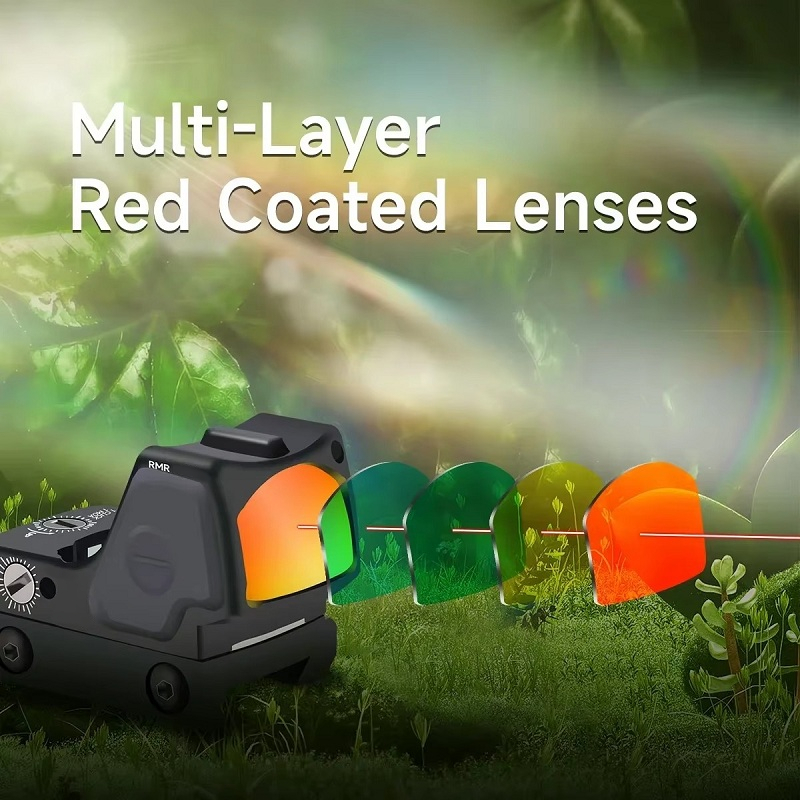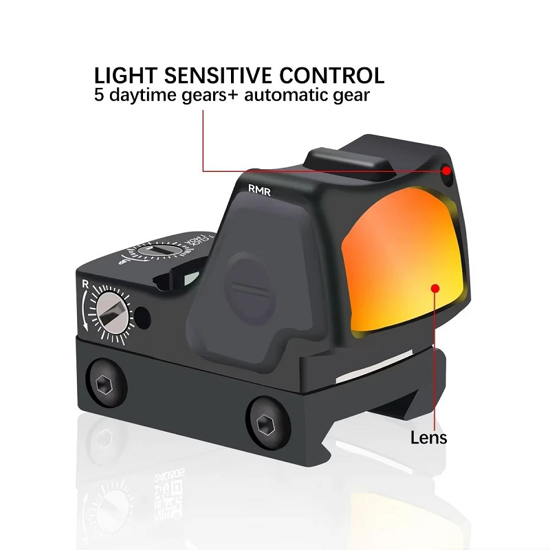 New light sensing technology, shock proof, multi coating lenses, fits RMR base and easy top changing battery.